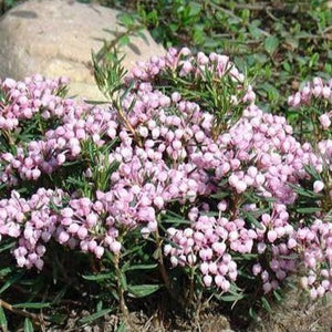 Petit arbuste compact, en monticule, feuillage étroit, coriace, rameaux grêles, feuillage persistant. Fleurs simples en bouquets terminaux de petites grappes.