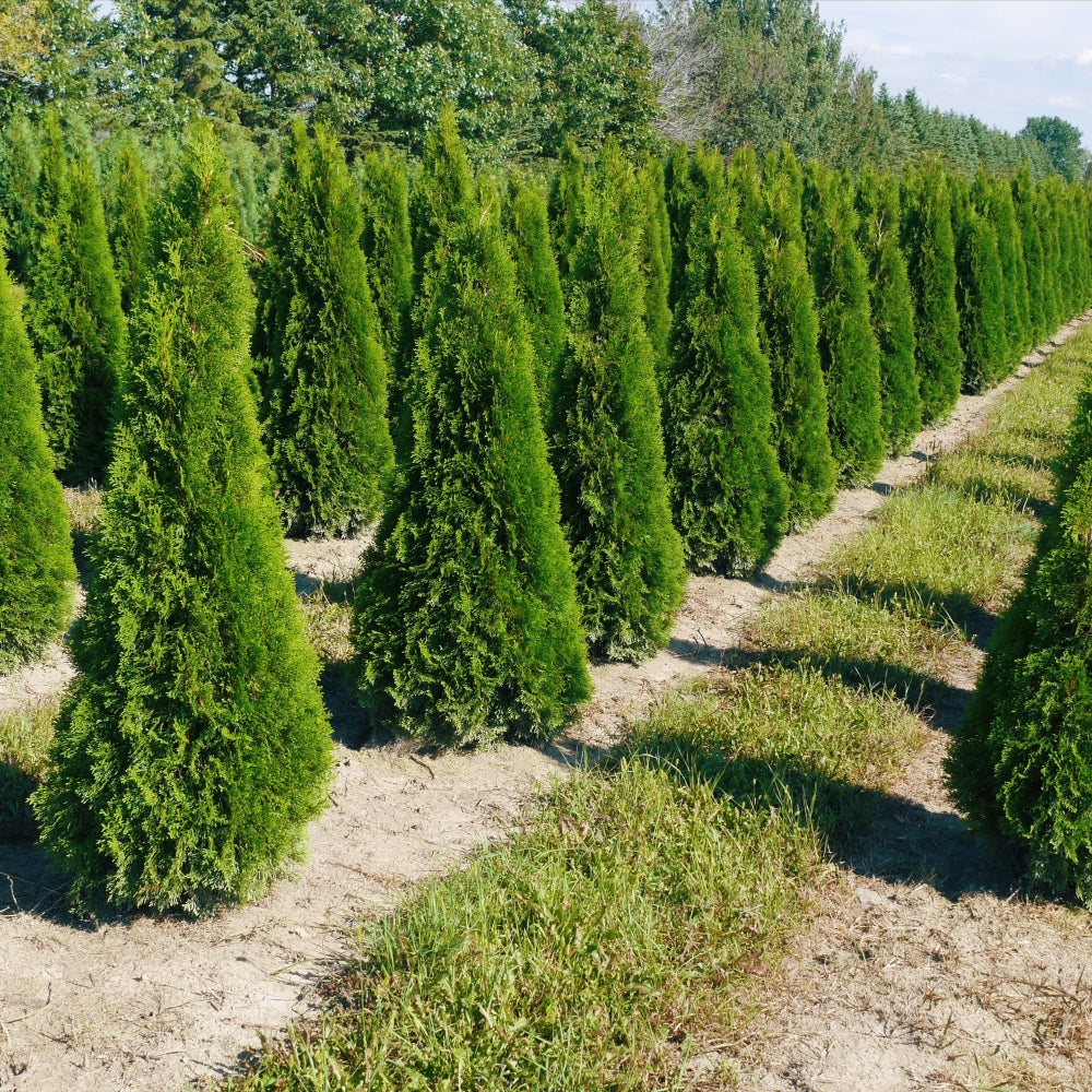 Le cèdre cultivé de qualité supérieure est le seul que vous trouverez chez nous. C’est un cèdre qui a été produit entre 6 et 7 ans pour atteindre sa taille de 6 pieds, et qui a été taillé et fertilisé chaque année pour faire de lui un cèdre presque parfait: large et fourni, exempt de maladie, résistant au froid et aux vents. Nos cèdres à haie poussent dans le sol typique de la Montérégie, un loam lourd et argileux. Ils peuvent s’adapter, grâce à cela, à tous les types de sols dans leur terrain d’accueil.