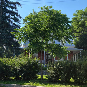 Le Gymnocladus dioicus, ou chicot du Canada, est un grand arbre indigène d’Amérique du Nord reconnu pour son port architectural, son feuillage finement découpé et sa grande rusticité. Il est particulièrement apprécié pour sa résistance aux conditions urbaines difficiles et sa capacité à pousser dans des sols pauvres et secs. En raison de son feuillage léger et de sa structure hivernale remarquable, il est souvent utilisé comme arbre d’ombrage dans les parcs et les grands jardins du Québec.