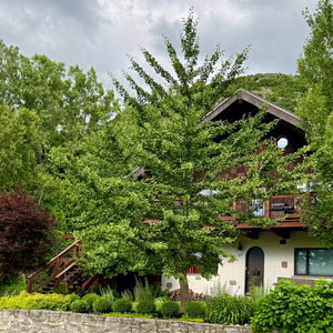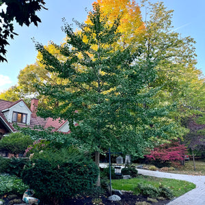 Le Ginkgo biloba ‘Autumn Gold’ développe un port plus large et symétrique, avec une coloration automnale jaune particulièrement intense, idéal pour les terrains résidentiels disposant de plus d’espace.
