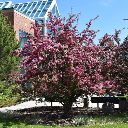Arbre à la cime arrondie et irrégulière. Le changement de couleur de son feuillage et sa floraison sont ses atouts les plus recherchés. Ses petites pommettes rouge pourpre sont persistantes et appréciées des oiseaux.