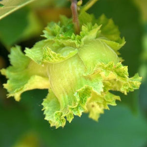 Fruits : partiellement autofertile, mais produit davantage s’il est pollinisé par un autre. Les fruits d’une grosseur d’environ 1,5 cm poussent en groupes de 2 à 4 sur un pédoncule de l’année en périphérie de l’arbuste. La noisette est comestible et recouverte d’une enveloppe courte, douce, facile à peler une fois séchée.