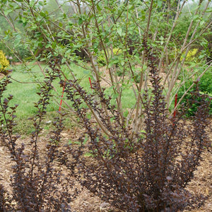 Arbuste au feuillage presque noir toute la saison et à la floraison blanche en juin. Aime les sols bien drainés.