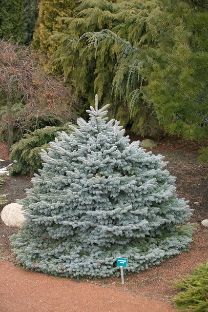 Conifère nain, au port large et régulier. Les branches sont horizontales. Les nouvelles pousses sont bleu intense.