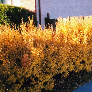 Arbuste de forme buissonnante, port globulaire, rameaux fins, gris jaunâtre dont l’écorce s’exfolie. Pour une haie, la taille peut intervenir de juin à septembre.