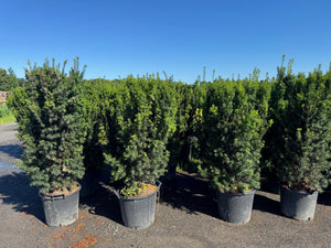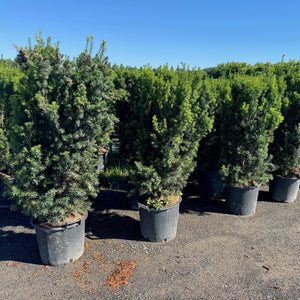 L’if hybride ‘Hicksii’ (Taxus × media ‘Hicksii’) est un conifère persistant à port étroit et dressé, largement utilisé pour la formation de haies structurées et les plantations en alignement, notamment à l'ombre. Issu d’un croisement entre Taxus cuspidata et Taxus baccata, il combine une bonne rusticité avec une excellente tolérance à la taille, ce qui en fait un classique des jardins formels et contemporains.