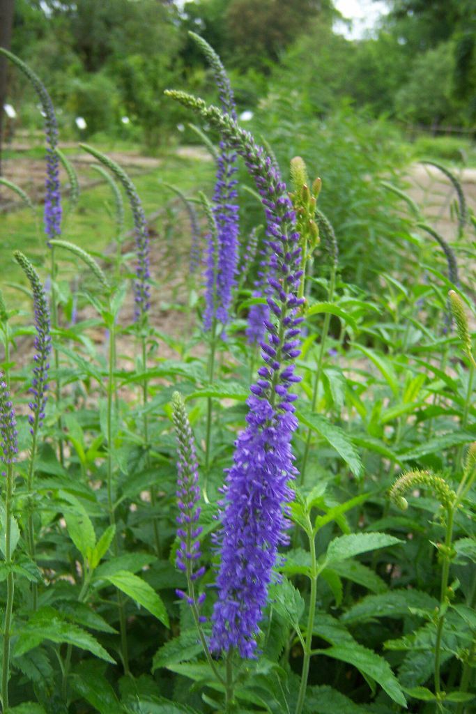 Floraison: Juin à août , Longs épis bleus, dressés, compacts